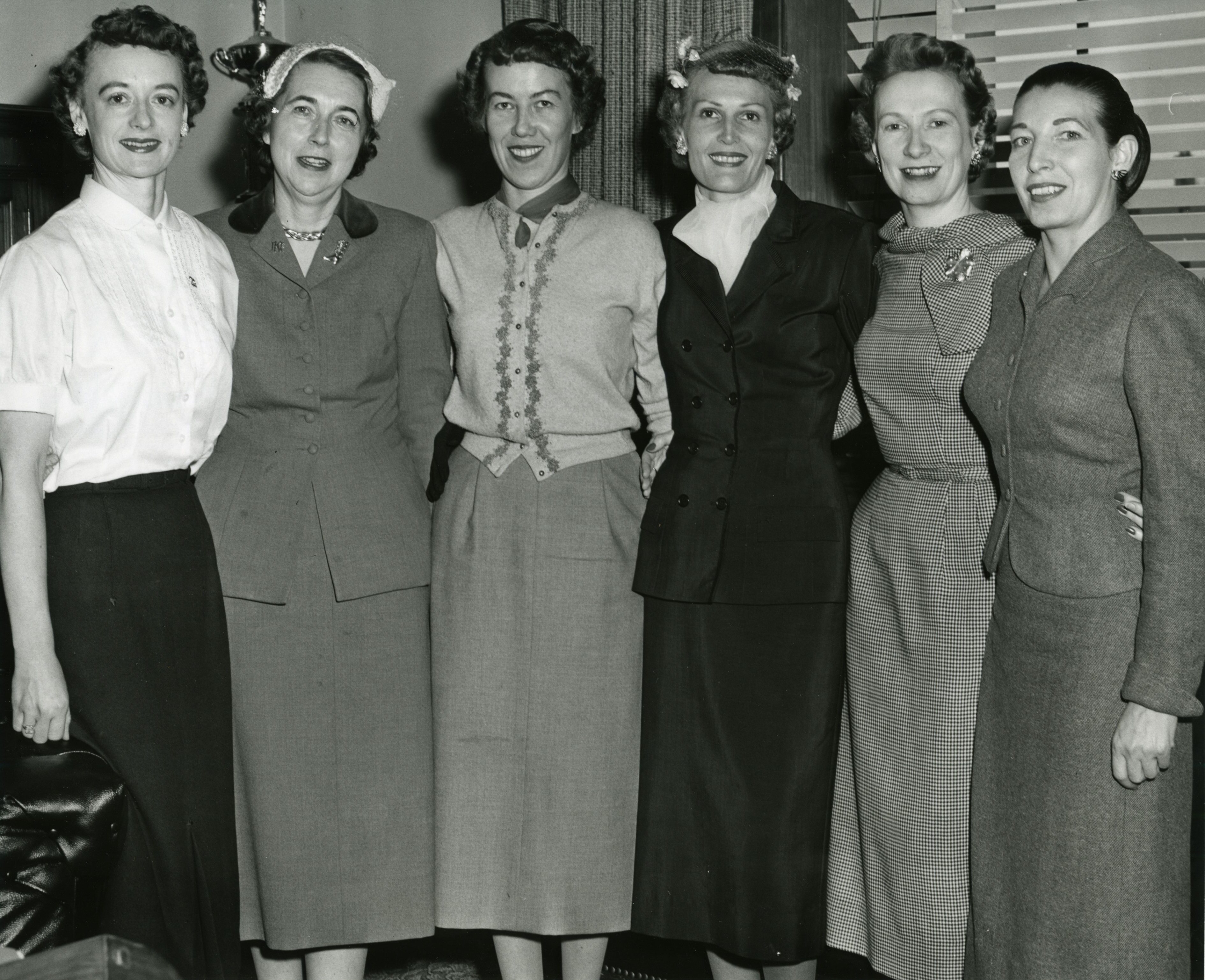 Pat Nixon stands with Rose Mary Woods, Dorothy Cox, Priscilla Everts, Margaret Brack, Louise Gaunt.