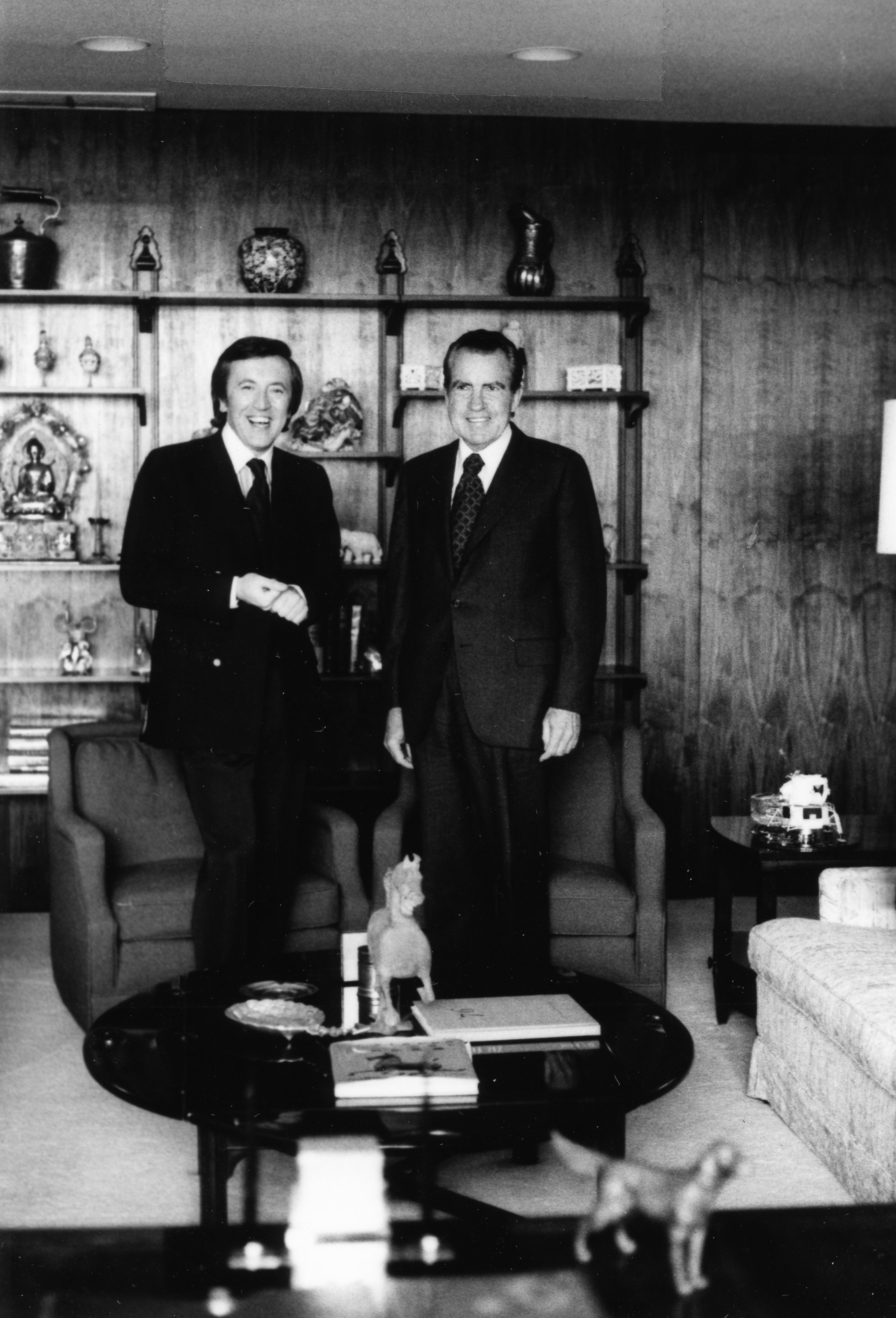 - Richard Nixon and David Frost on the set of the Frost/Nixon interviews production