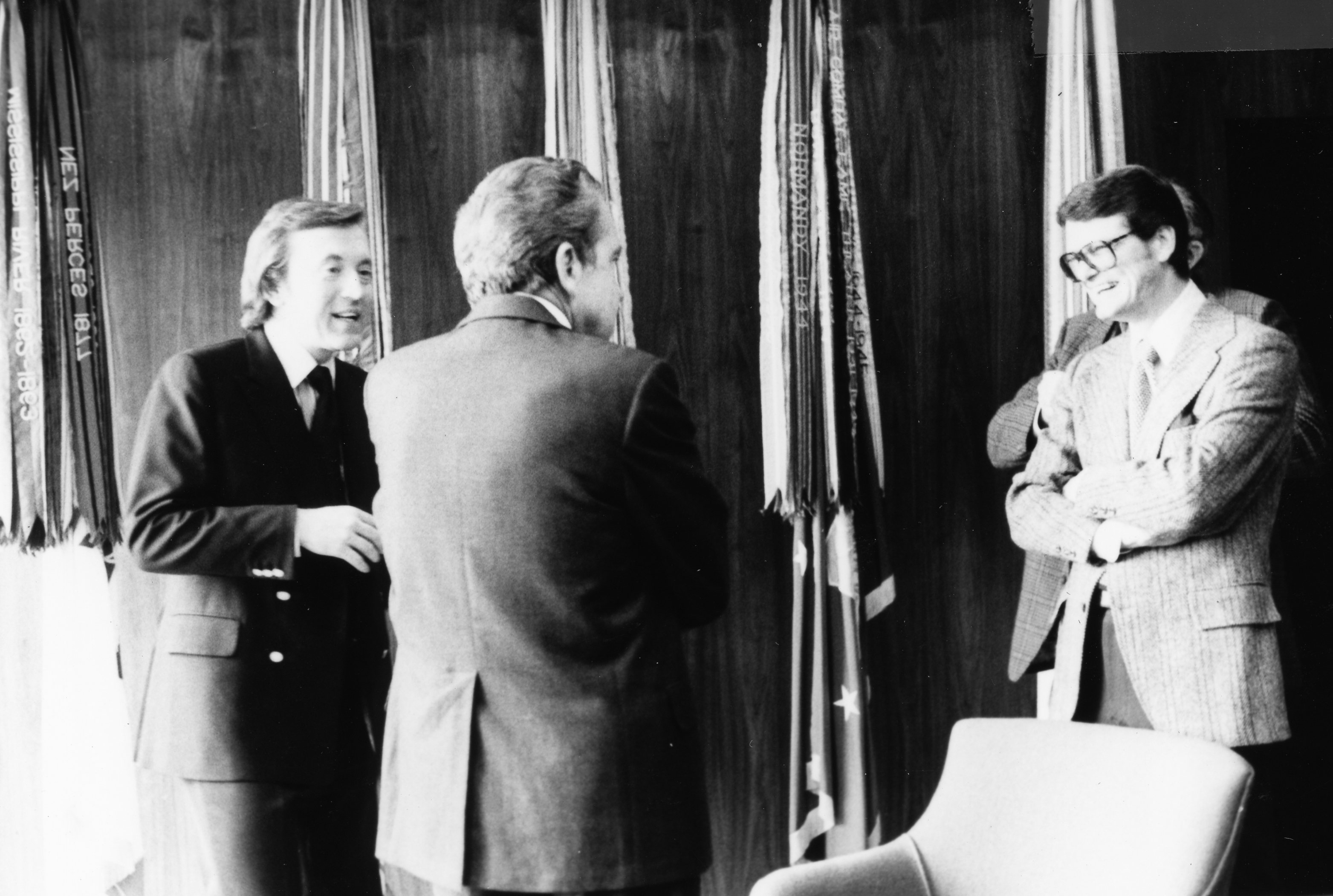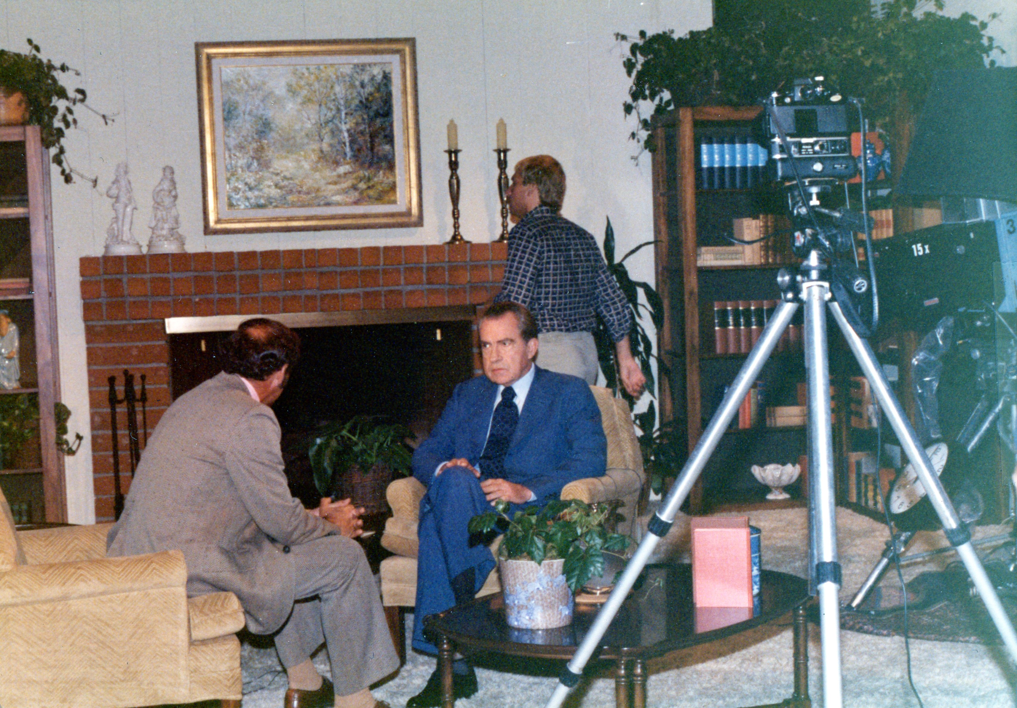 - Former President Richard Nixon with David Frost and staff member