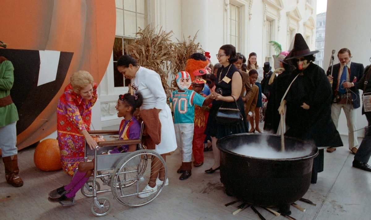 In 1971, the First Lady maintained the Halloween tradition by hosting the first and only record of Halloween trick-or-treating at Camp David. While there for the weekend with the President, Mrs. Nixon encouraged the children of personnel who worked at the presidential retreat to don costumes and she didn’t disappoint them, offering candy treats for their bags — on the promise of them playing no tricks on her.