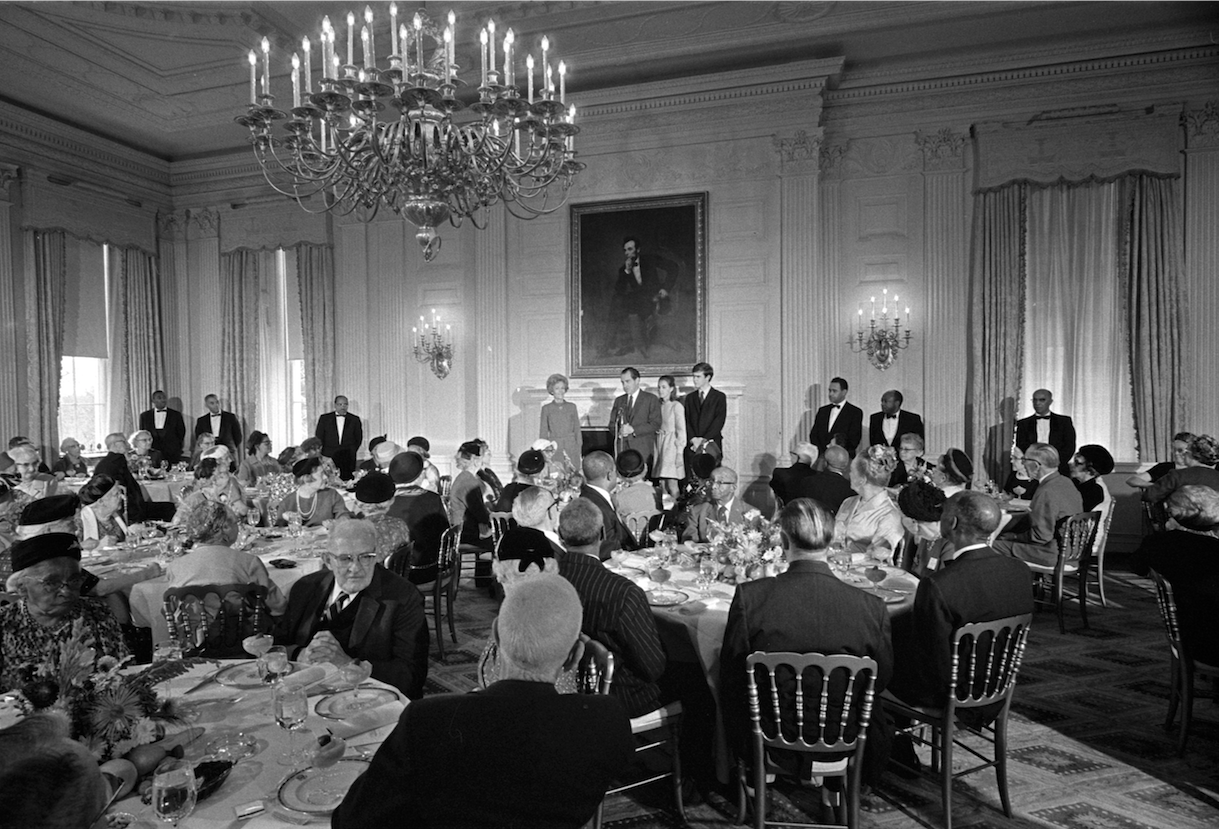 On Thursday, November 27, 1969, 225 guests, coming from 18 regional retirements and assisted living facilities, arrived for Thanksgiving dinner at the White House as guests of the Nixons.