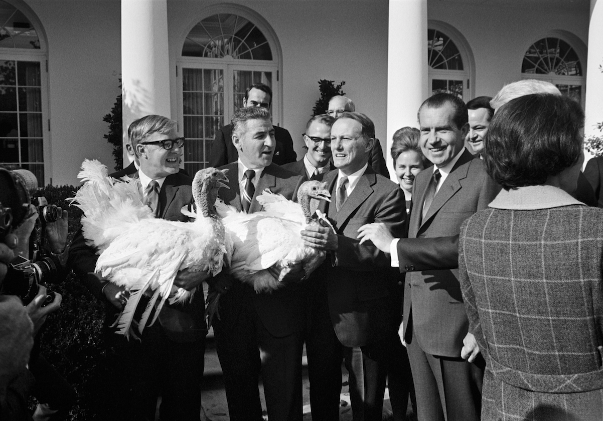 The White House did not explain why it was that the First Lady broke precedent to accept the birds, rather than her husband. Some speculated that it was due to his being scheduled at the same time to visit the Washington Redskins football team’s practice facility; a fanatical football fan, Nixon strongly rooted for his adopted city’s home team.