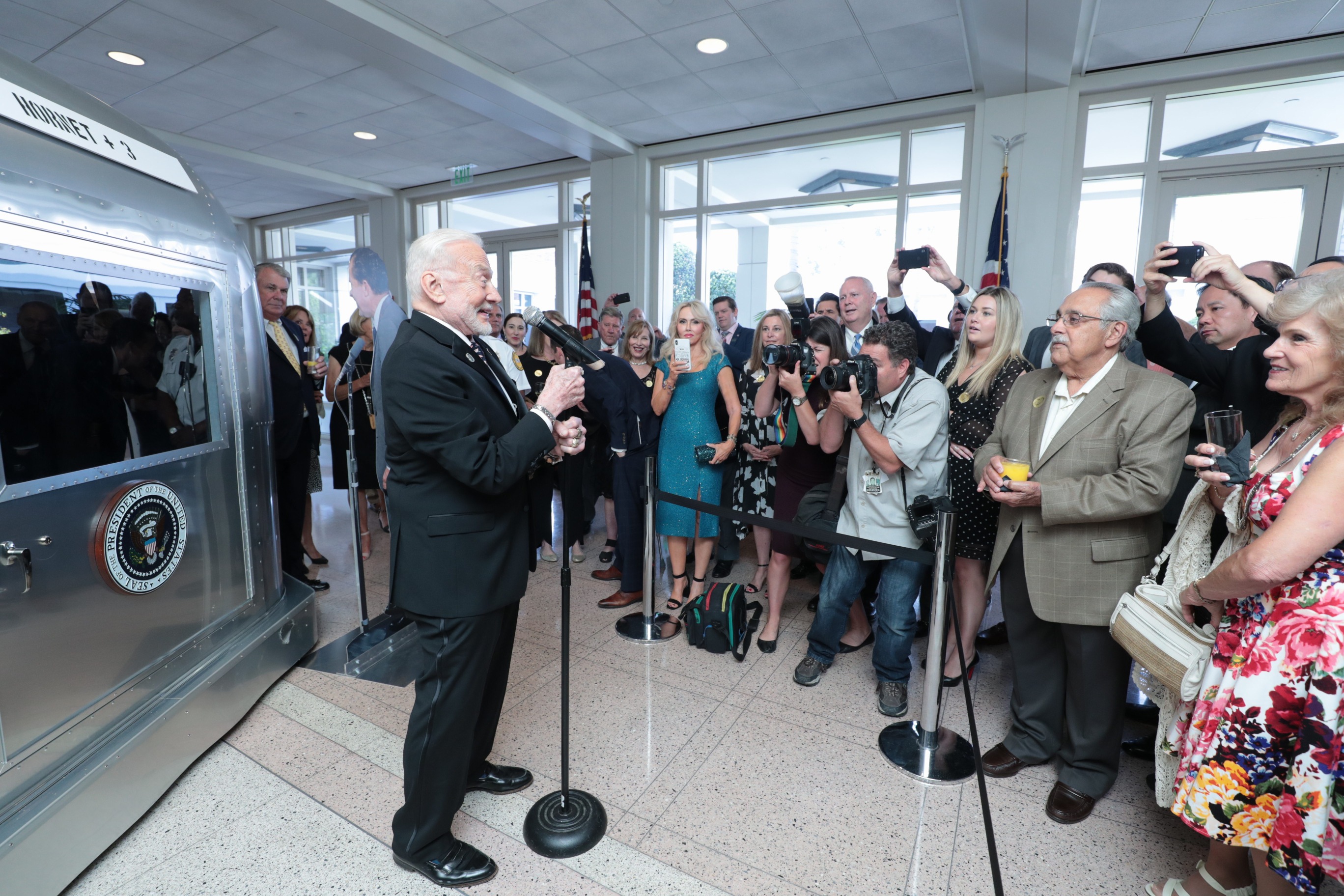 Prior to the ceremonies, Aldrin toured the Nixon Library’s special exhibit, “Apollo 11: One Giant Leap for Mankind.”