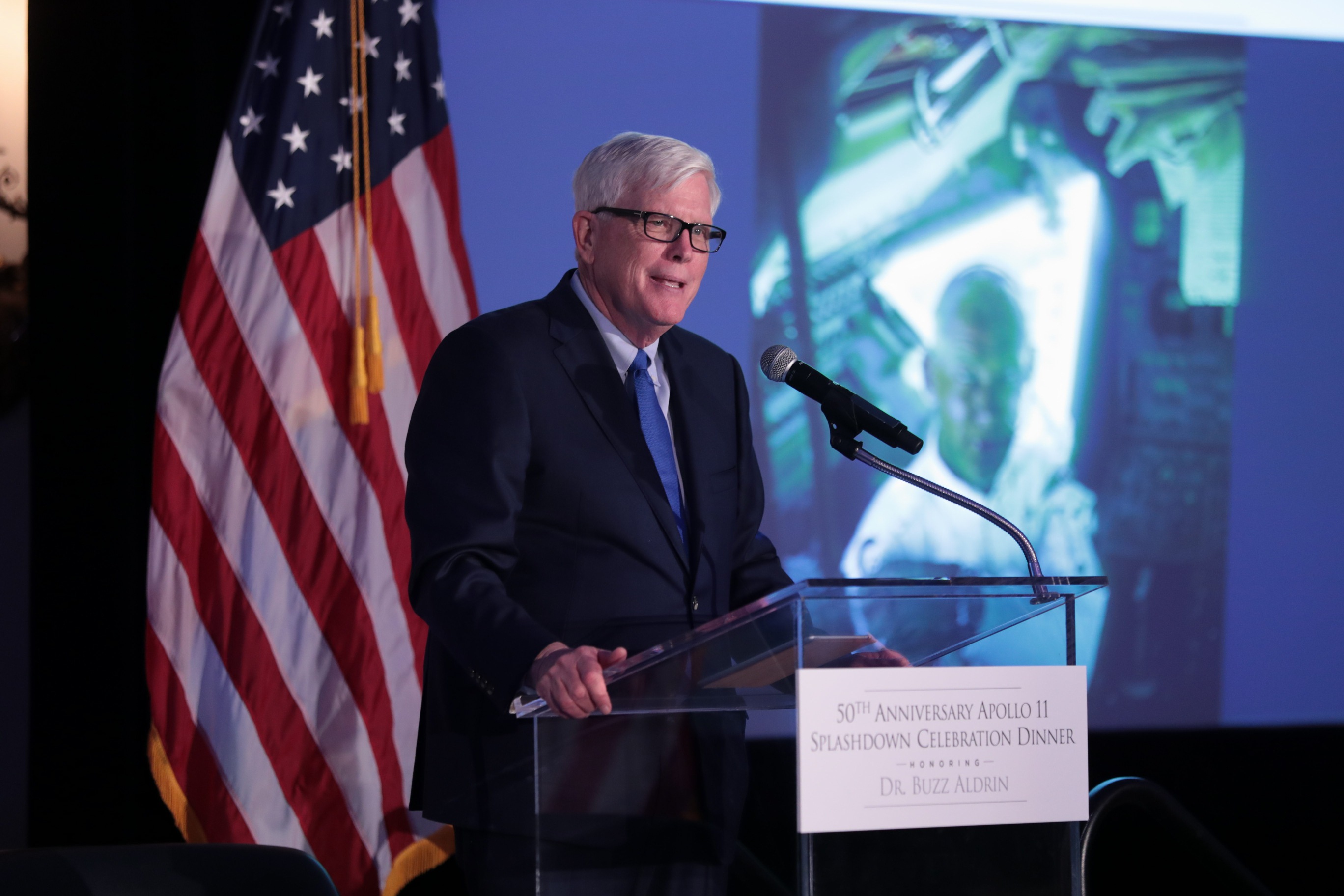 The Nixon Foundation presented Apollo 11 astronaut Buzz Aldrin with its “Greatest Comeback Award,” honoring the second man on the moon for his and fellow astronauts 240,000 mile re-entry to Earth which began 50 years ago today. The three splashed down in the South Pacific on July 24, 1969, and met with President Nixon on the U.S.S. Hornet before returning to U.S. soil, and journeying on a goodwill trip across the world.