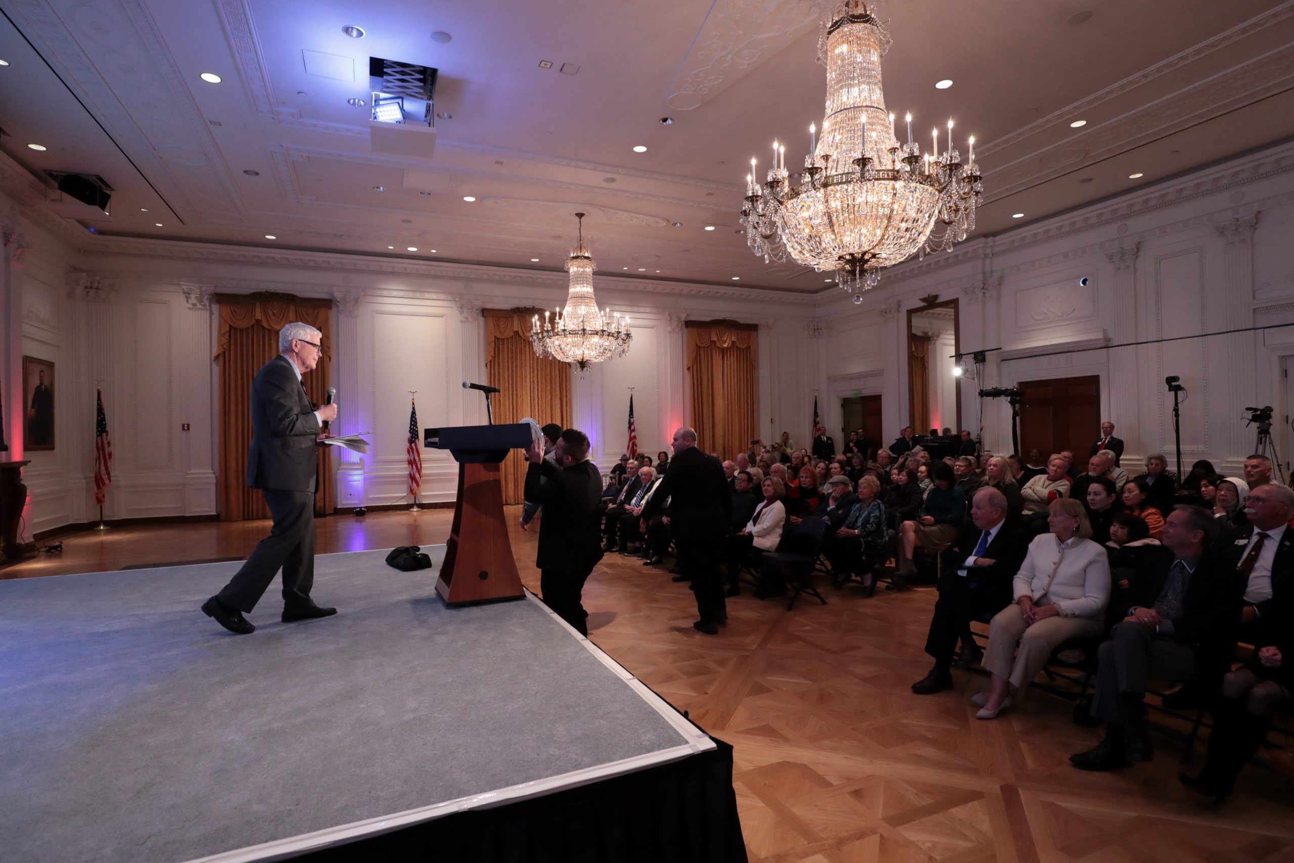 The East Room West was unveiled on January 9, in celebration of the 107th anniversary of President Nixon’s birth. The opening ceremony was led by Foundation President Hugh Hewitt and included remarks from White House Curator Bill Allman, followed by singing, dance, and instrumental performances from some of Orange County’s most promising young artists. This premiere performance in the East Room West was delivered by Orange County Music and Dance.