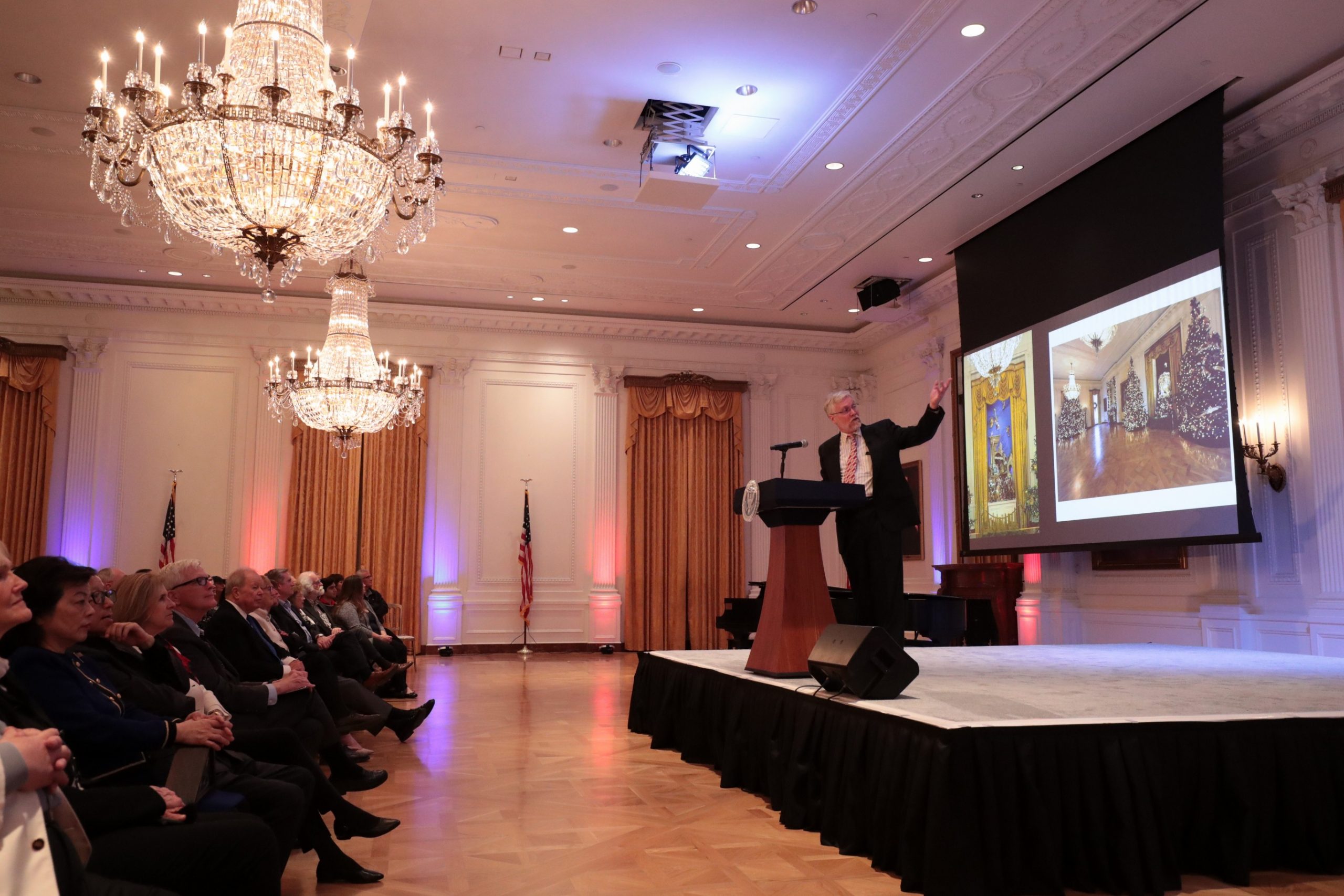 The upgrades include the installation of a new audiovisual system that will allow programs and performances to be streamed live on YouTube and Facebook, allowing the many events in the East Room West to be viewed as they happen by people across the world. All elements installed in the ceiling can be concealed when the East Room West is not in use.