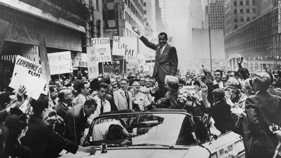 VP Richard Nixon ran for President against Senator John F. Kennedy. Pat Nixon campaigned alongside her husband and traveled to all 50 states during the campaign. Kennedy defeated Nixon by the smallest popular-vote margin in American history.